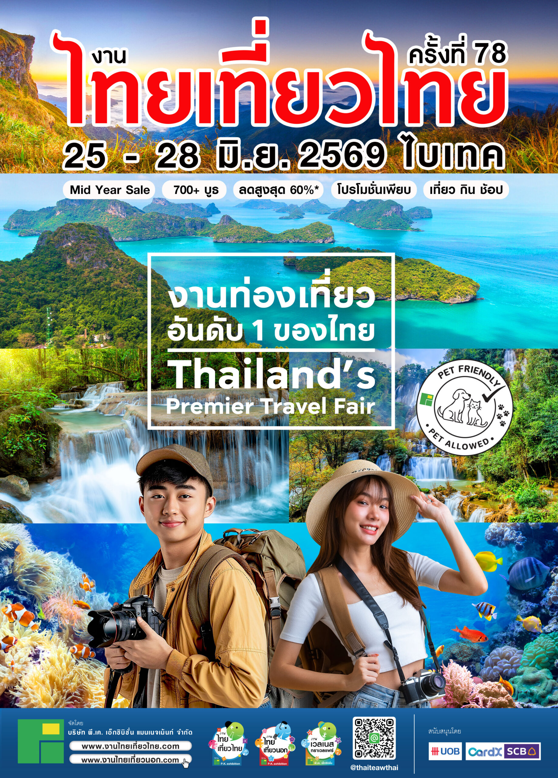 งานไทยเที่ยวไทย มหกรรมแสดงสินค้า B2C ด้านการท่องเที่ยวภายในประเทศที่มีผู้แสดงงานเป็นจำนวนมากที่สุดของไทย ได้แก่ โรงแรม รีสอร์ท บริษัททัวร์ รถเช่า สายการบิน สปา เรือท่องเที่ยว สวนสัตว์ สวนสนุก สถานบันเทิงและพักผ่อนหย่อนใจ ของฝากของที่ระลึก อาหาร และบริการด้านการท่องเที่ยวครบครัน
