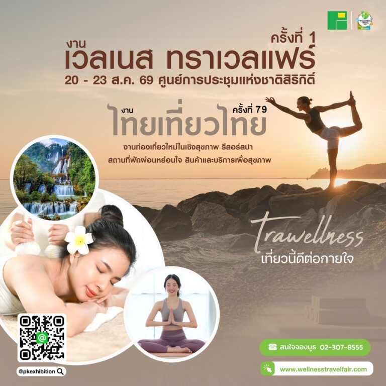 บริษัท พี.เค. เอ็กซิบิชั่น แมนเนจเม้นท์ จำกัด เล็งเห็นความสำคัญของการท่องเที่ยวเชิงสุขภาพ หรือ Wellness Tourism การท่องเที่ยวเทรนด์ใหม่ที่กำลังมาแรงสำหรับคนไทยยุคใหม่ที่ใส่ใจสุขภาพและธรรมชาติบำบัด จัดโซนงาน Wellness Travel Fair ครั้งที่ 1 ขึ้นมาพร้อมกันภายในงานไทยเที่ยวไทย ครั้งที่ 79 ระหว่างวันที่ 20 – 23 สิงหาคม 2569 ณ ศูนย์การประชุมแห่งชาติสิริกิติ์ ฮอลล์ 5 – 6 ภายในงานจะมีกลุ่มสินค้าการท่องเที่ยวเวลเนส ได้แก่ สปา นวดเพื่อสุขภาพ โรงแรม รีสอร์ทเชิงธรรมชาติ สินค้าเพื่อสุขภาพ รวมทั้งหมด 100 บูธ
